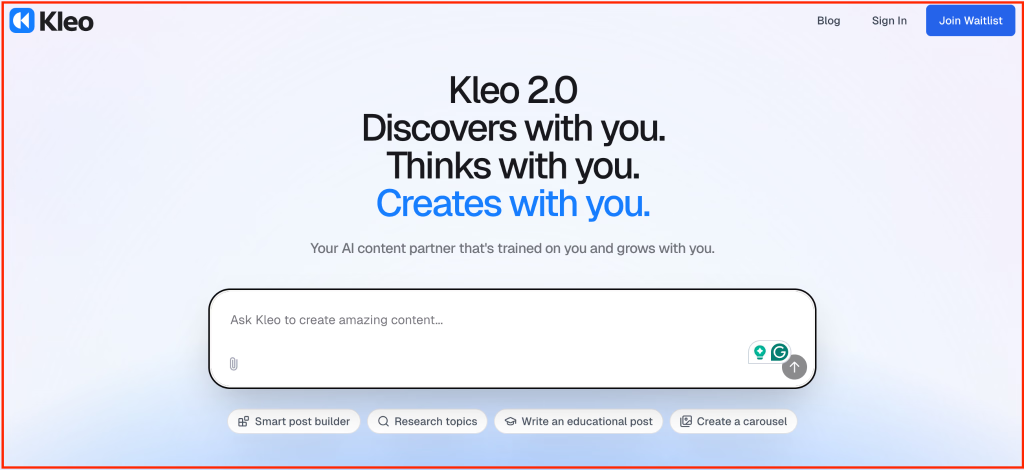 Kleo is an AI writing assistant for LinkedIn creators who want their posts to sound more like their own voices. Rather than just helping you churn out content, Kleo learns your tone, language, and writing patterns so your posts feel personal and consistent—even when AI is doing the heavy lifting. It’s a strong fit for founders, consultants, or creators who want to speed up content creation while maintaining their unique voice.